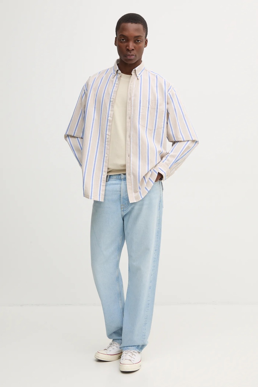 Хлопковая рубашка Hugo Blue мужская цвет бежевый relaxed воротник button-down 50534183 4816016