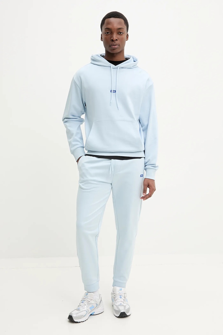 Хлопковая кофта Hugo Blue мужская цвет чёрный с капюшоном с принтом 50536113 4947308