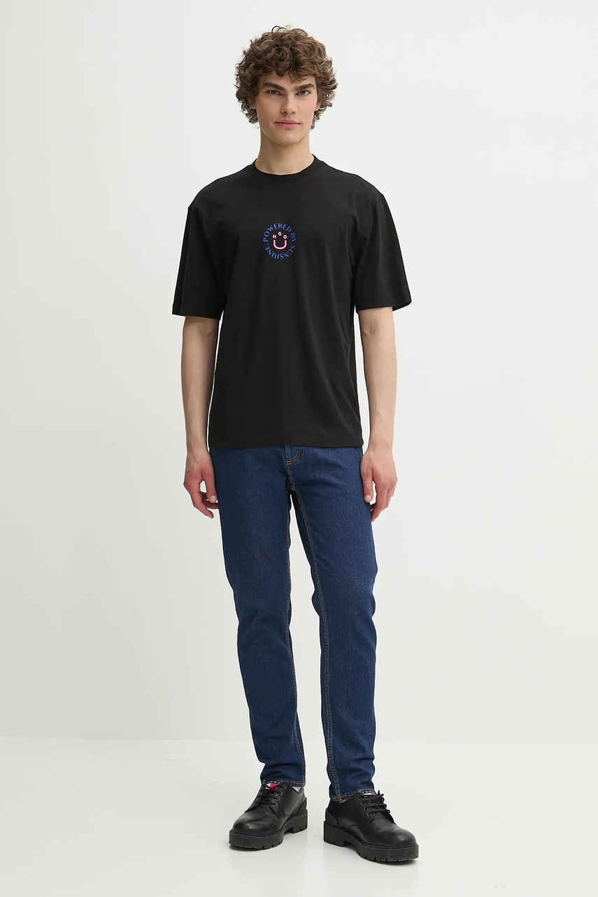 Хлопковая футболка Hugo Blue мужская цвет чёрный с принтом 50532123 4842738