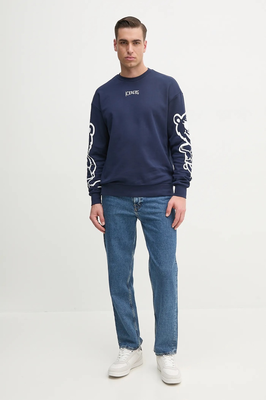 Хлопковая кофта Iceberg мужская цвет синий с принтом E053 6341 5035185