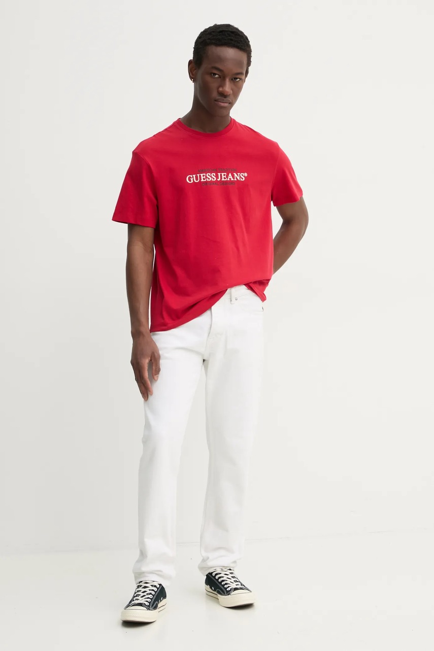 Хлопковая футболка Guess Jeans мужская цвет красный с аппликацией M4YI52 K8HM0 4379820