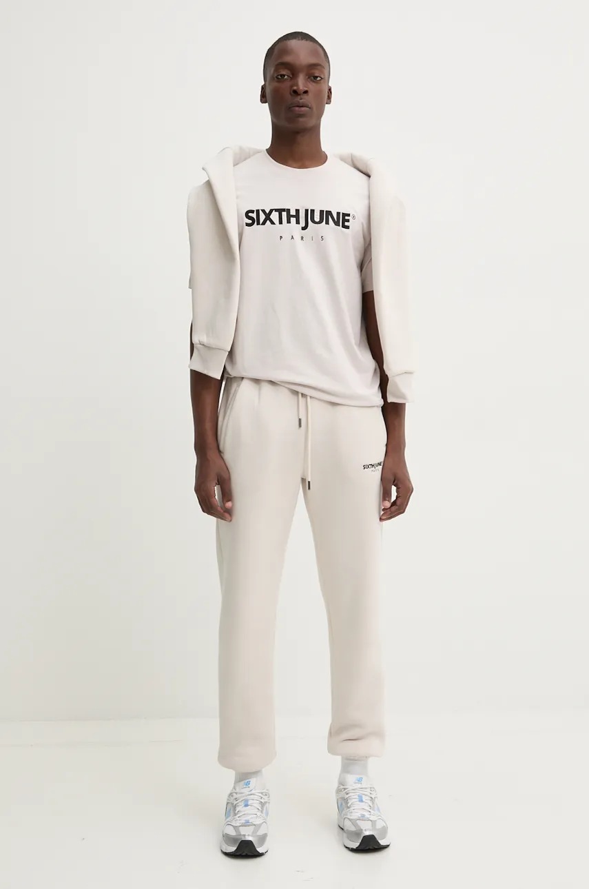 Хлопковая футболка Sixth June мужской цвет бежевый с аппликацией 4002448