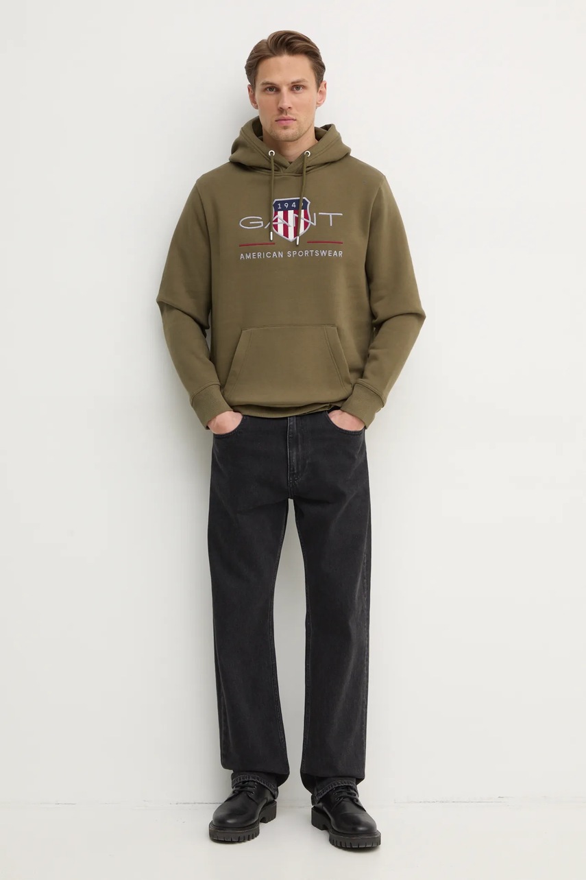 Кофта Gant мужская цвет зелёный с капюшоном с аппликацией 4753882