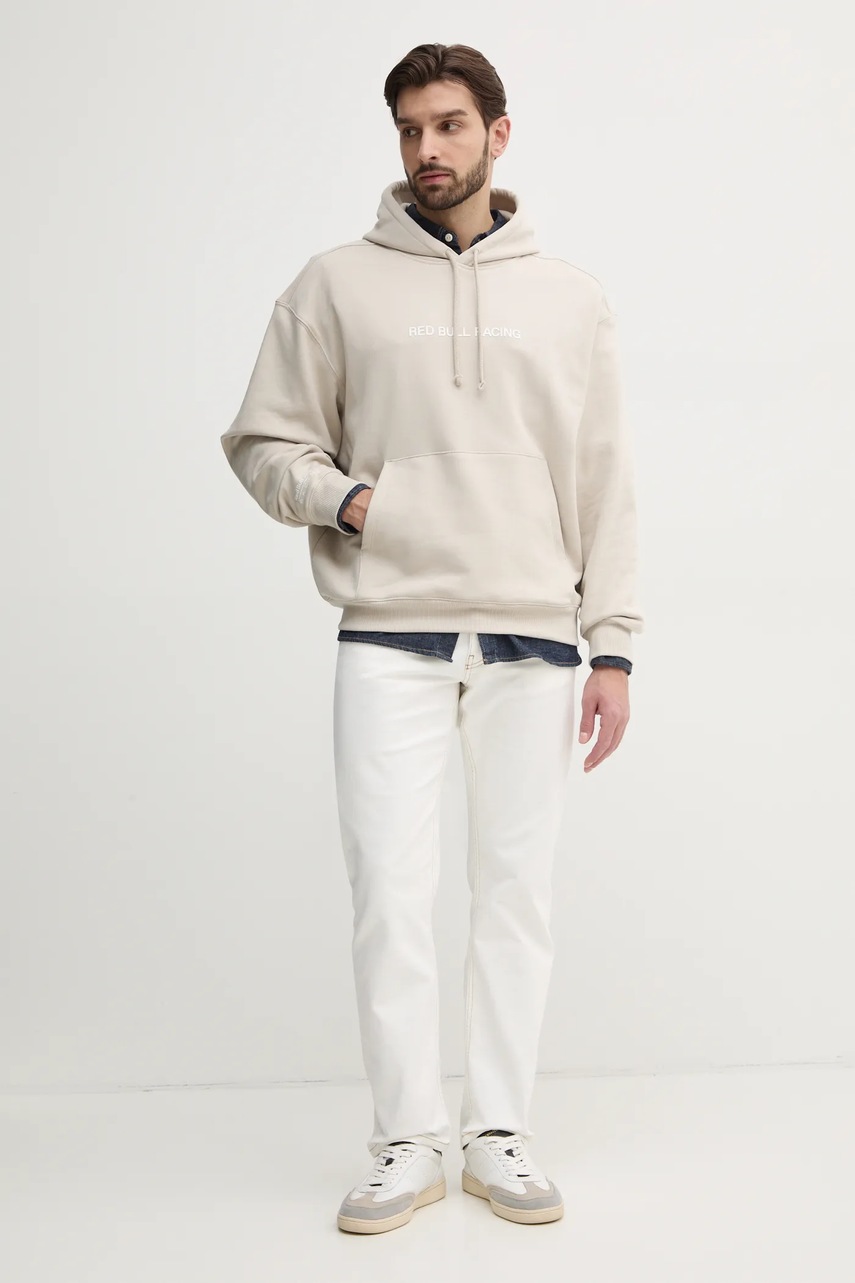 Хлопковая кофта Red Bull Racing x Pepe Jeans BREAKING RECORDS HDY мужская цвет бежевый с капюшоном с принтом RM580021 4807234