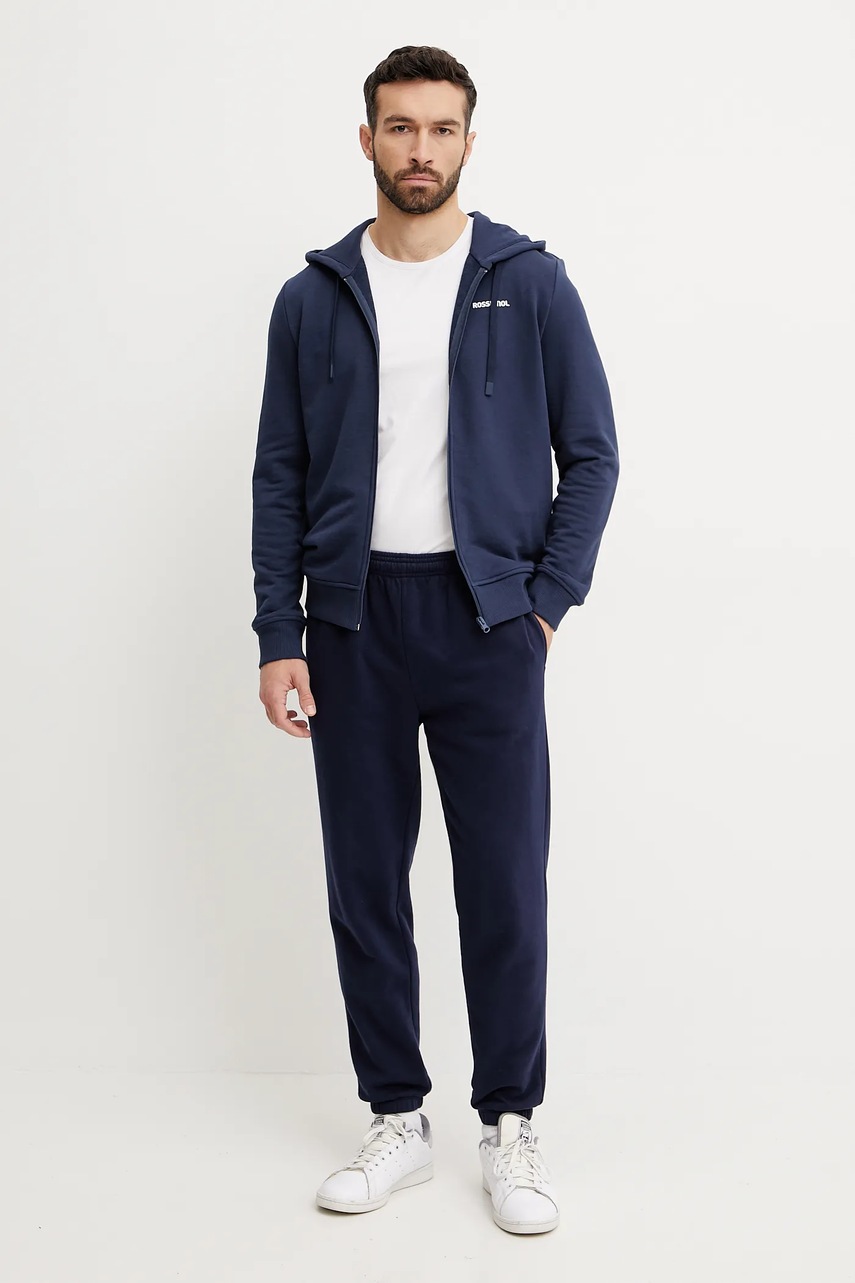 Хлопковая кофта BOSS BOSS CASUAL мужская цвет синий с аппликацией 3217729