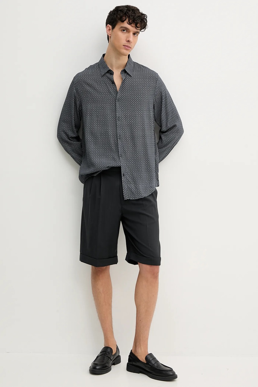 Хлопковая рубашка Armani Exchange мужская цвет чёрный relaxed классический воротник 6DZCL7 ZN3CZ 4320371
