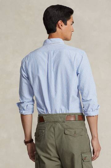 Хлопковая рубашка Polo Ralph Lauren мужская цвет синий regular классический воротник 2978477