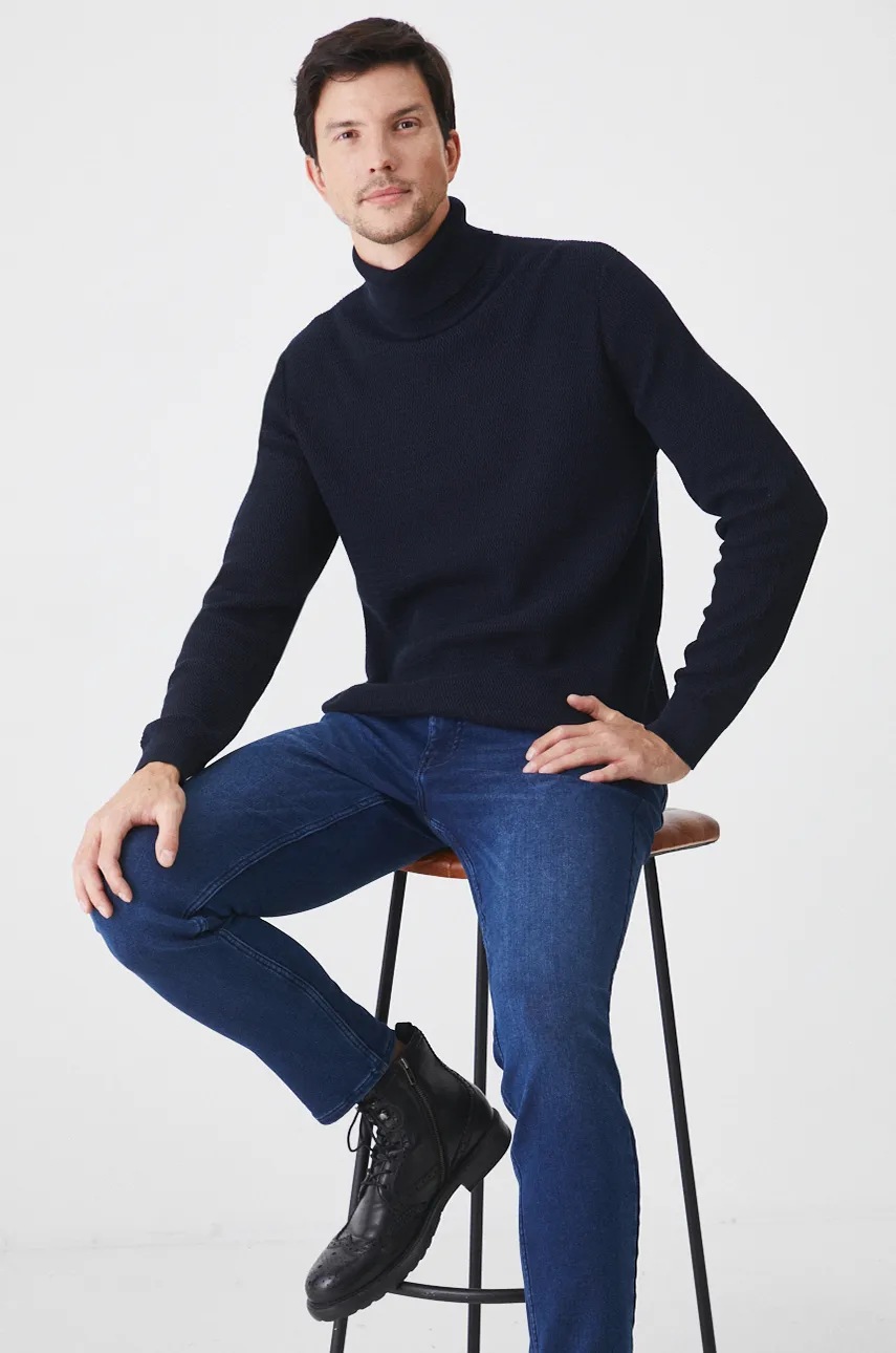 Хлопковый свитер Medicine мужской цвет синий с гольфом 4568908