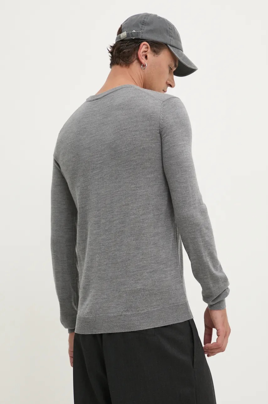 Шерстяной свитер HUGO мужской цвет серый лёгкий 4402686