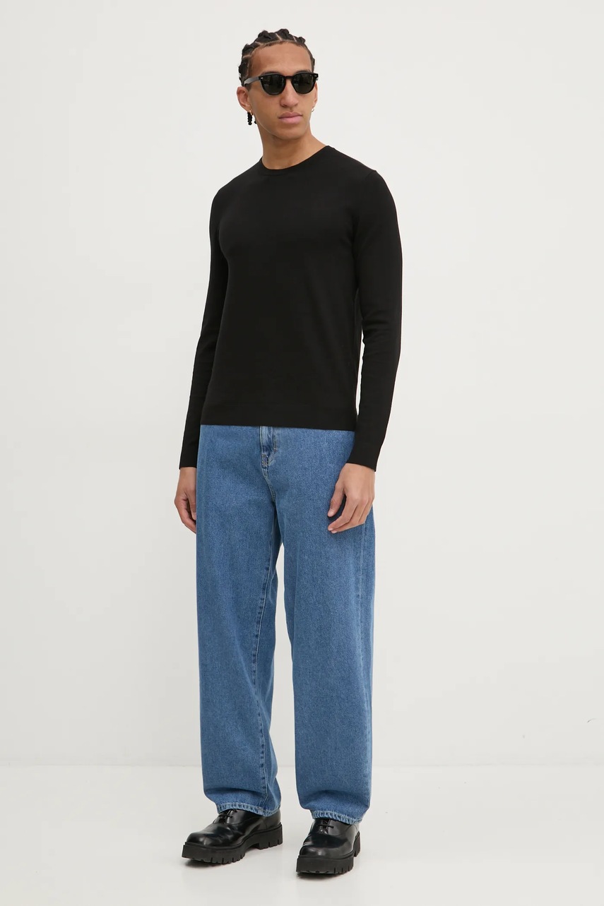 Шерстяной свитер BOSS мужской цвет чёрный лёгкий 2661924