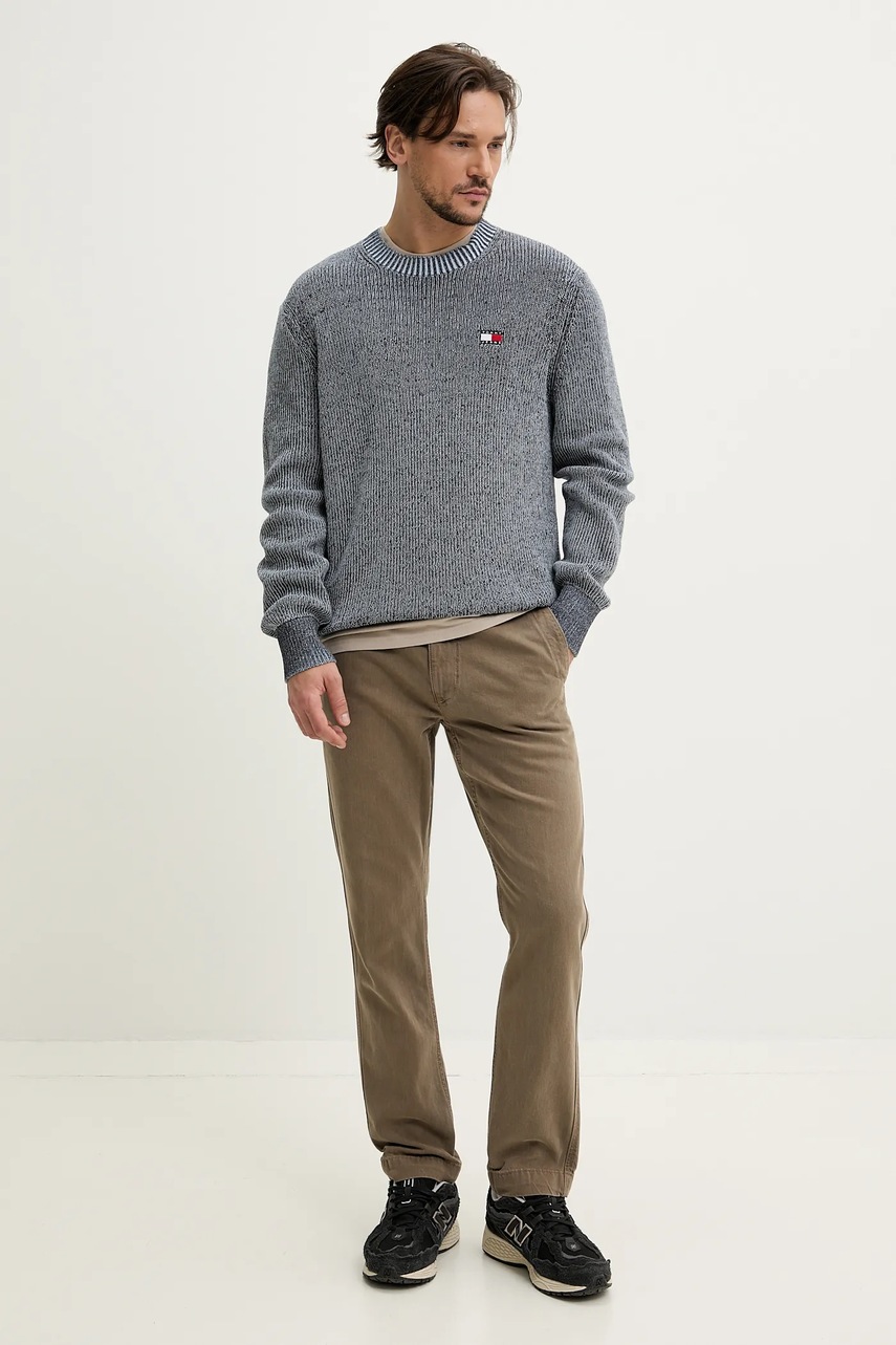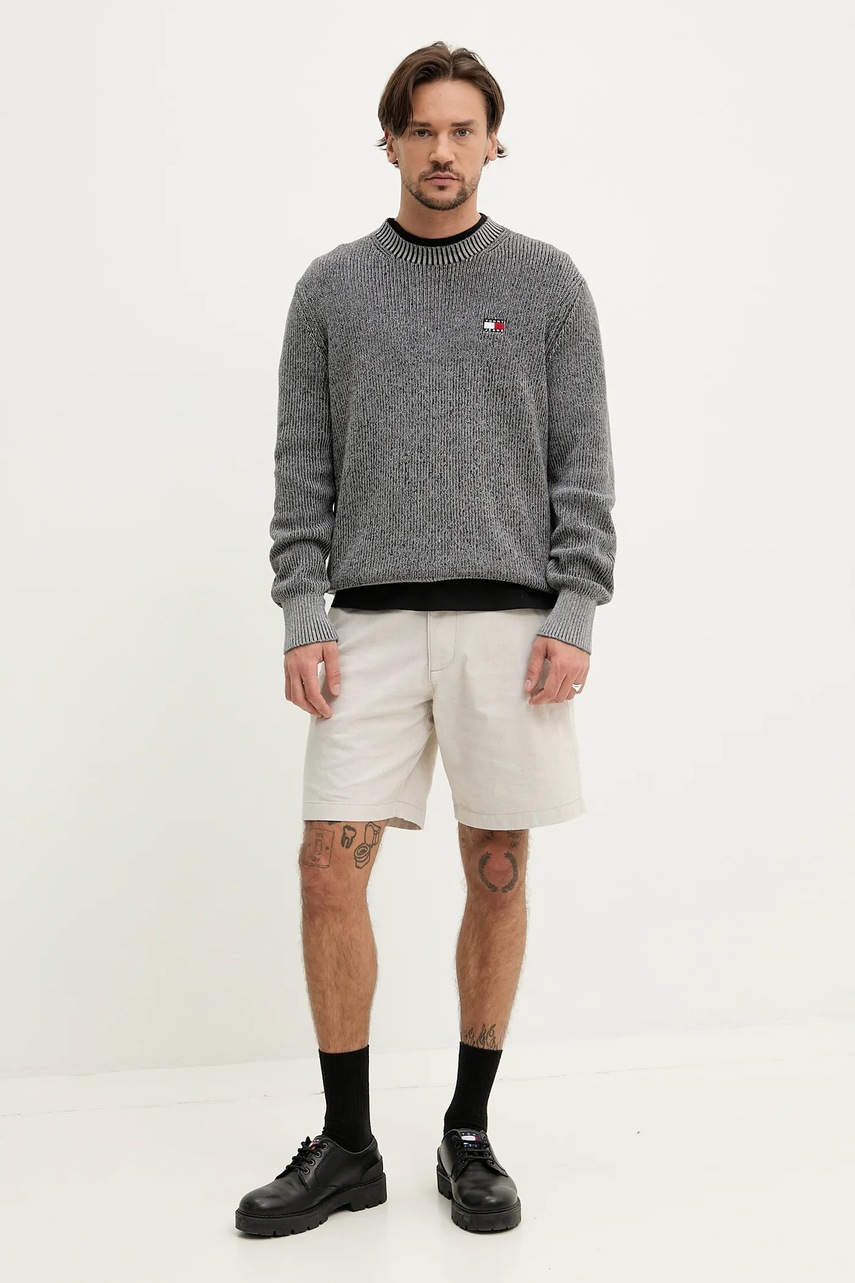 Хлопковый свитер Tommy Jeans мужской цвет серый лёгкий DM0DM20923 4935418