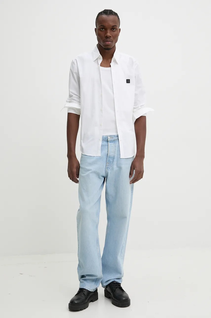 Хлопковая рубашка HUGO мужская цвет белый slim классический воротник 3721594