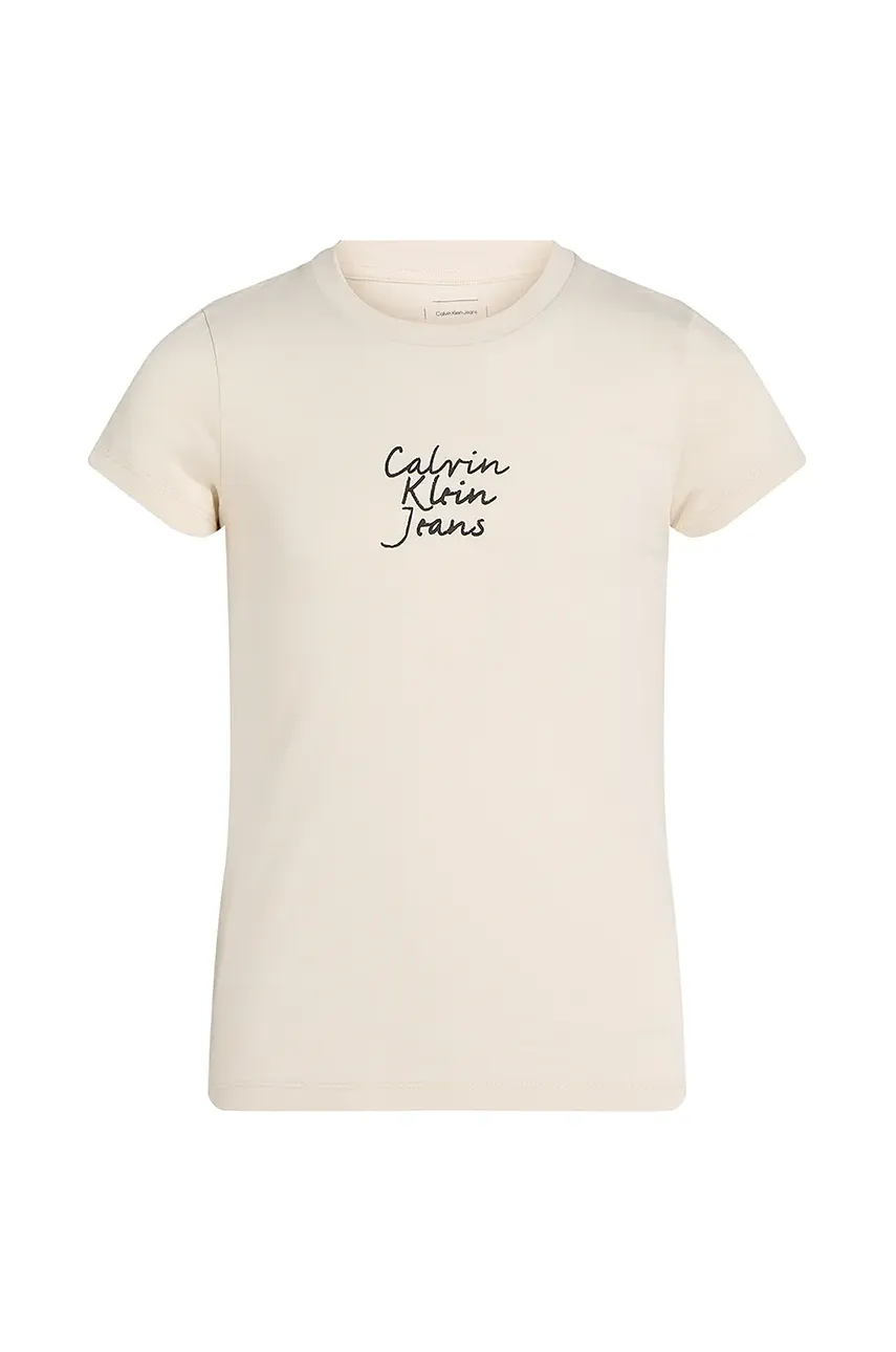 Детская хлопковая футболка Calvin Klein Jeans цвет бежевый IG0IG02973 5252975