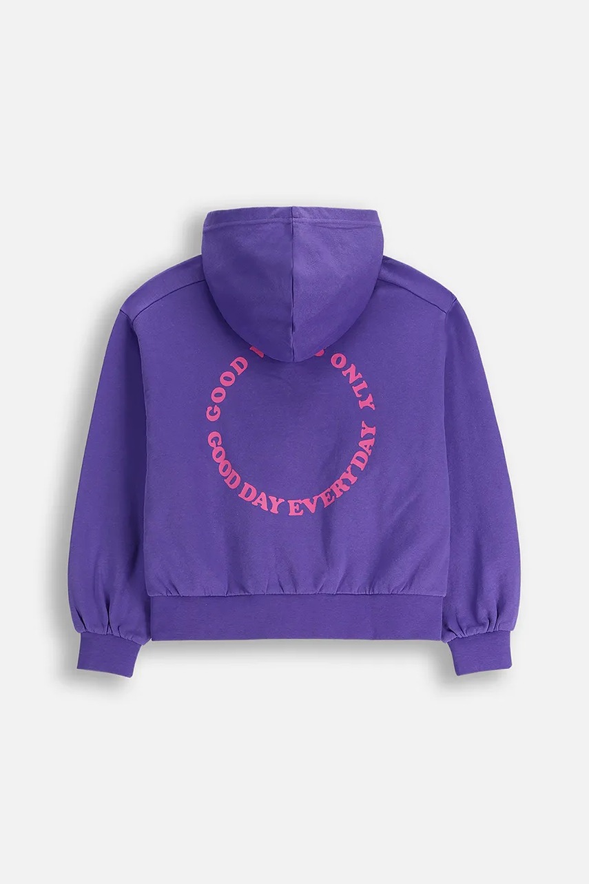 Детская хлопковая кофта Coccodrillo цвет фиолетовый с капюшоном с принтом EVERYDAY GIRL A 5375634