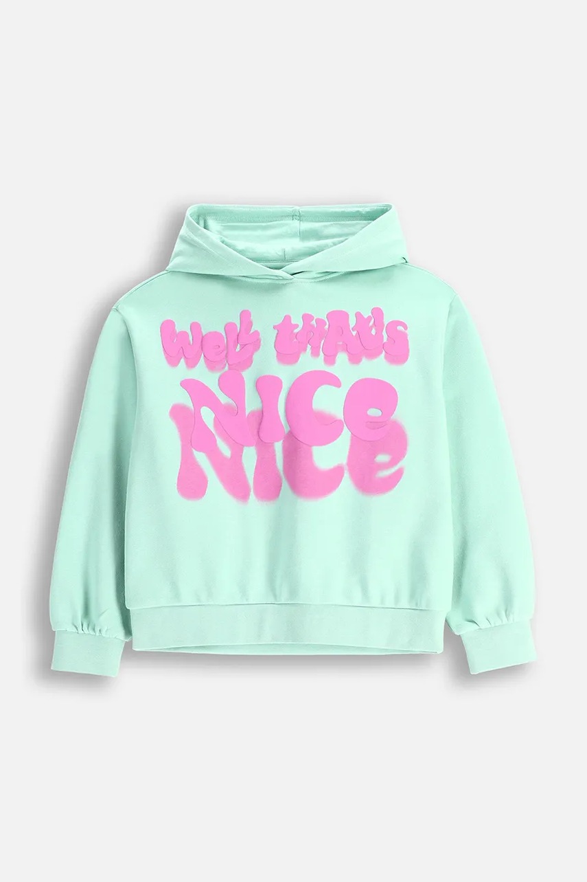 Детская кофта Coccodrillo цвет бирюзовый с капюшоном с принтом COSMIC GIRL JUNIOR 4985354
