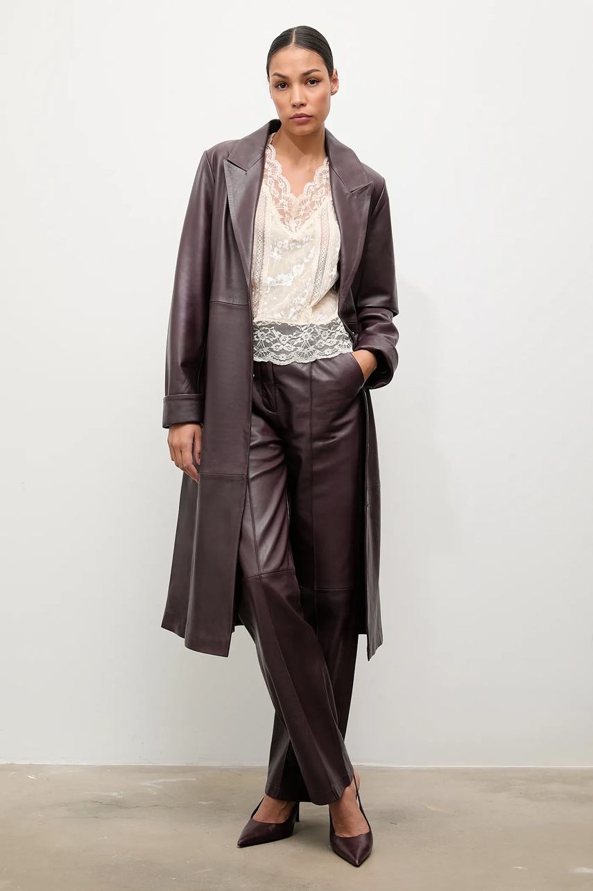 Кожаный плащ Answear.LAB цвет бордовый 5393674