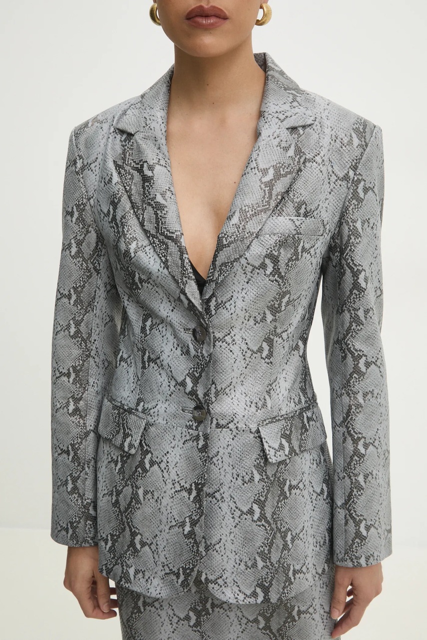 Кожаный пиджак Answear.LAB цвет серый однобортный узор 4919562