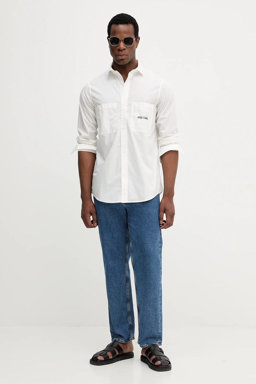 Хлопковая рубашка Armani Exchange цвет бежевый regular классический воротник XM000959 AF12994 5271599