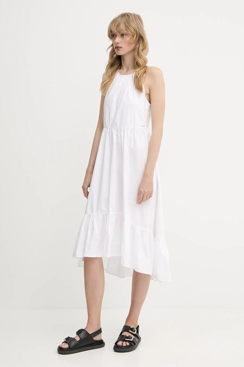 Хлопковое платье Armani Exchange цвет белый midi расклешенное XW000477 AF12812 5173815