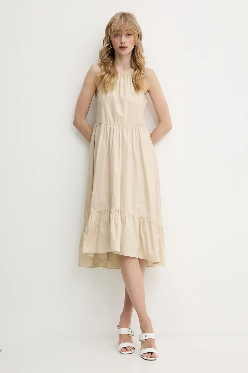 Хлопковое платье Armani Exchange цвет бежевый midi расклешенное XW000477 AF12812 5172286