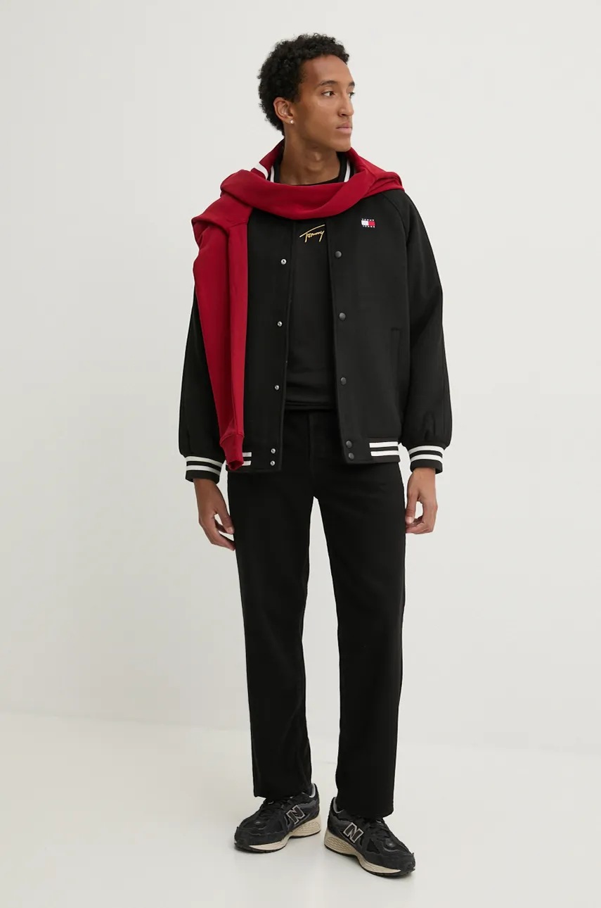 Куртка-бомбер с примесью шерсти Tommy Jeans цвет чёрный переходная DM0DM20685 4540942