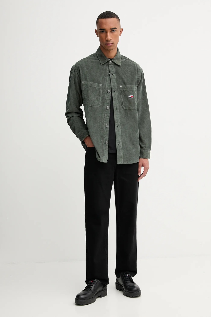 Вельветовая рубашка Tommy Jeans цвет зелёный relaxed классический воротник DM0DM22016 5425558