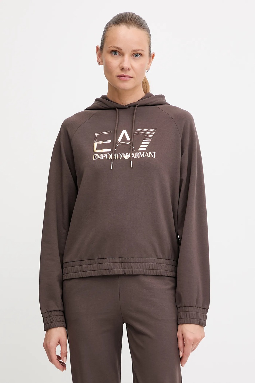 Хлопковая футболка EA7 Emporio Armani цвет коричневый AF12503.7W000407 5312592