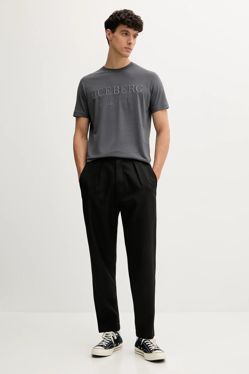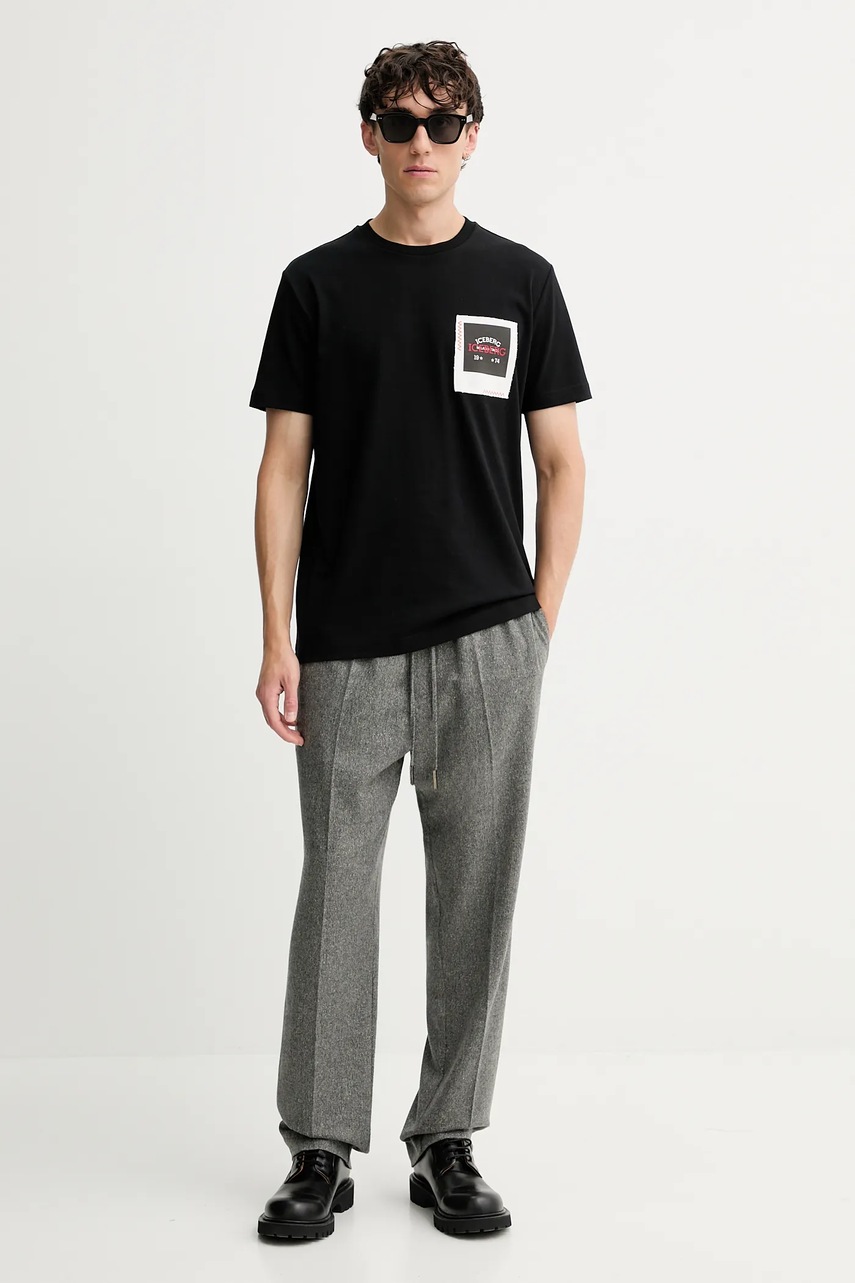 Хлопковая футболка Iceberg цвет чёрный с аппликацией F042 6304 5354136