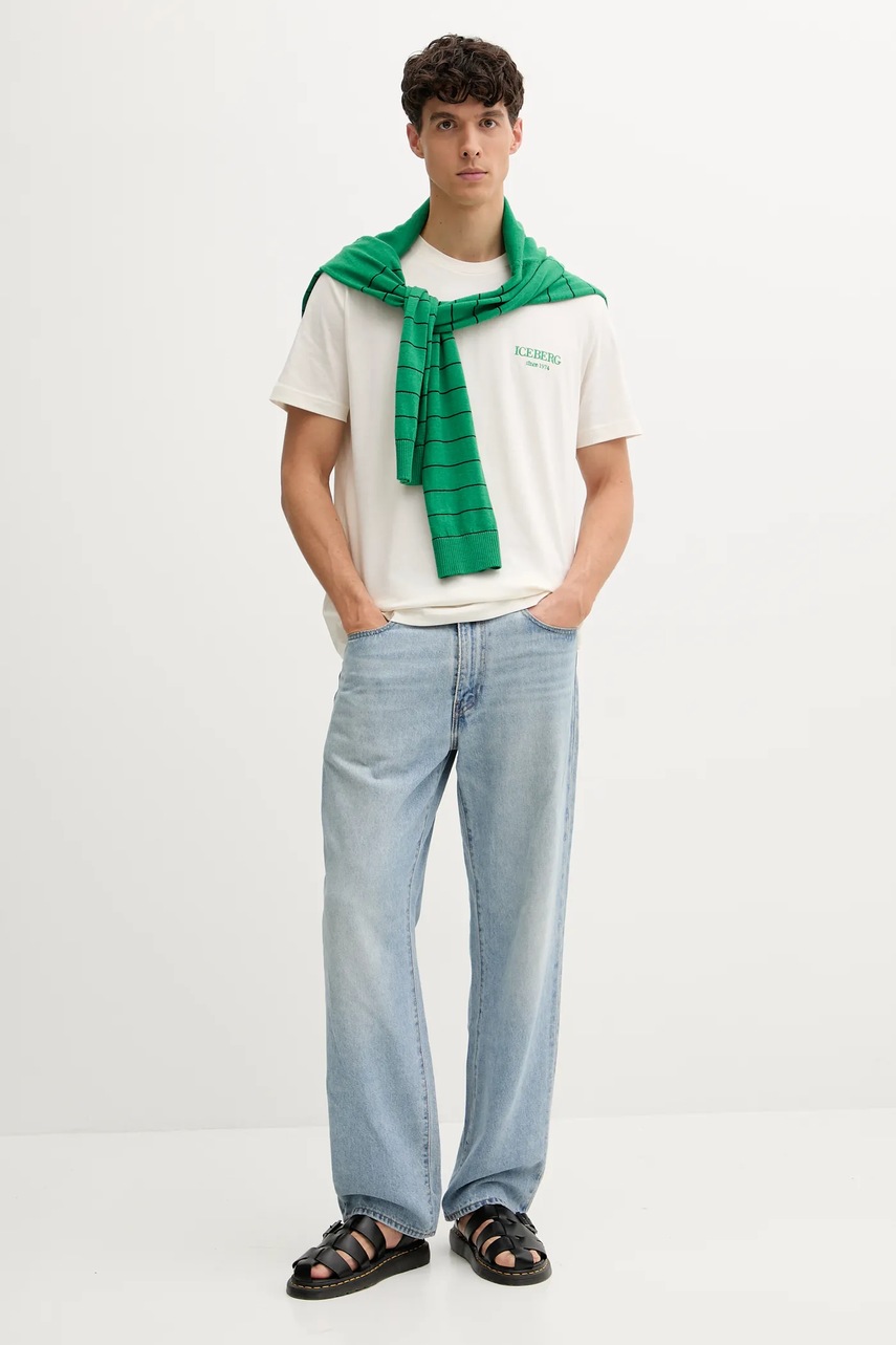 Хлопковая футболка Iceberg цвет бежевый с принтом F010 6325 5428848
