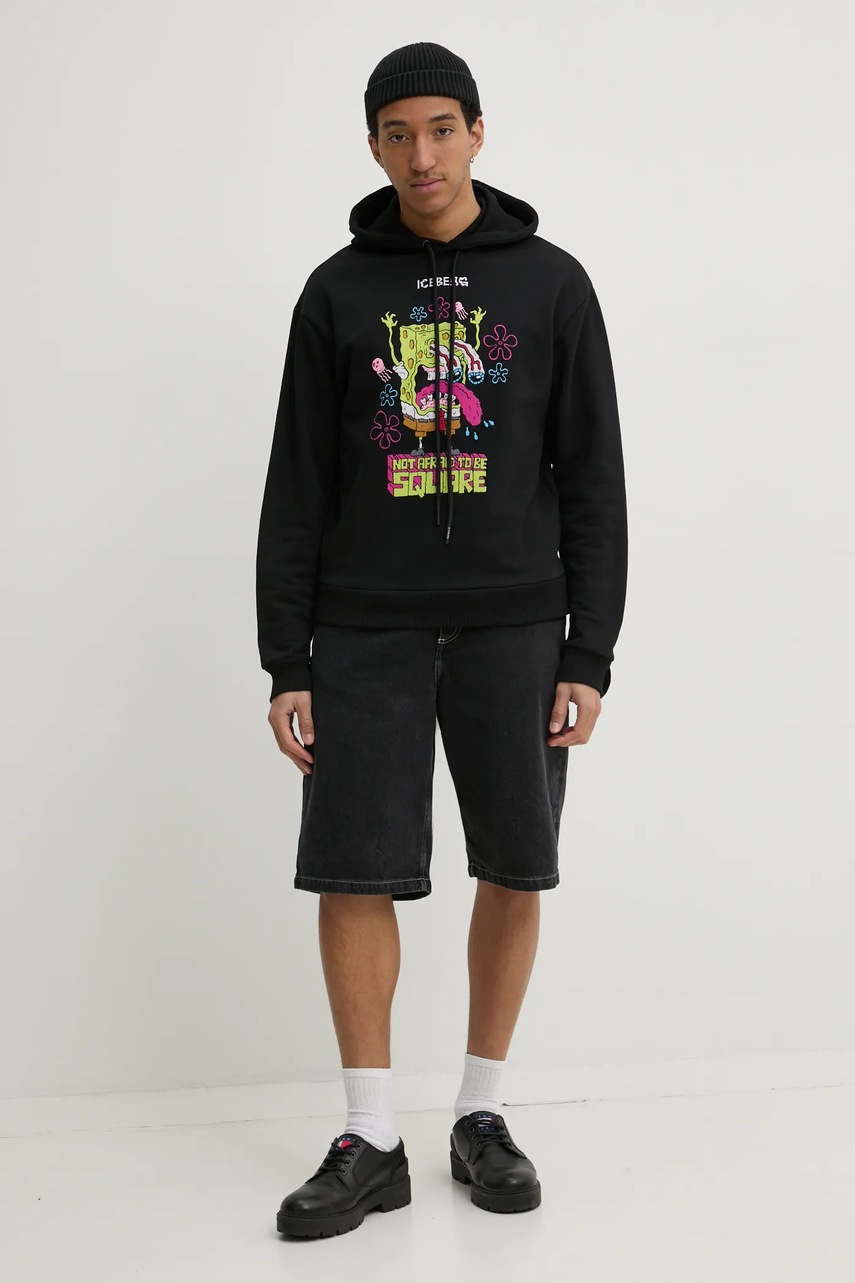 Хлопковая кофта Iceberg мужская цвет чёрный с капюшоном с принтом E60A 6334 4797401