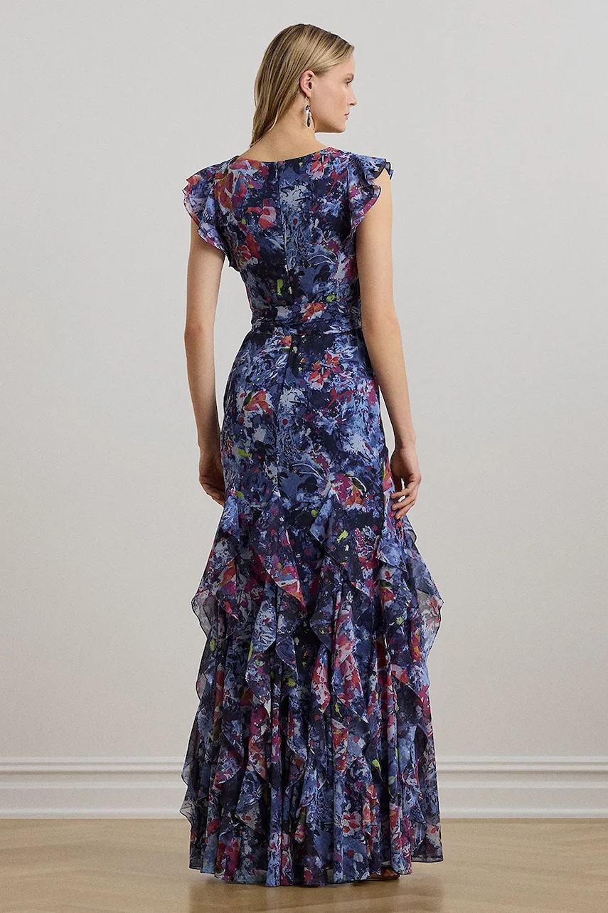 Платье Lauren Ralph Lauren цвет синий maxi расклешённое 253976966 5211703