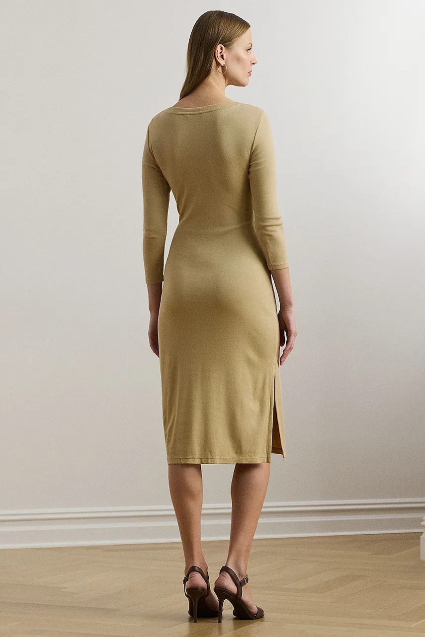 Платье Lauren Ralph Lauren цвет бежевый midi облегающее 200973598 5260189