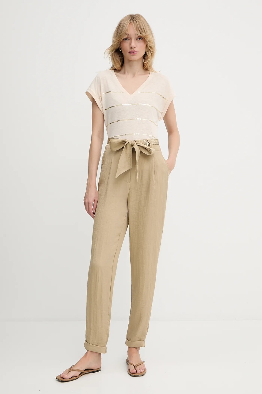 Брюки Morgan цвет бежевый прямые высокая посадка PAVIK 5218557