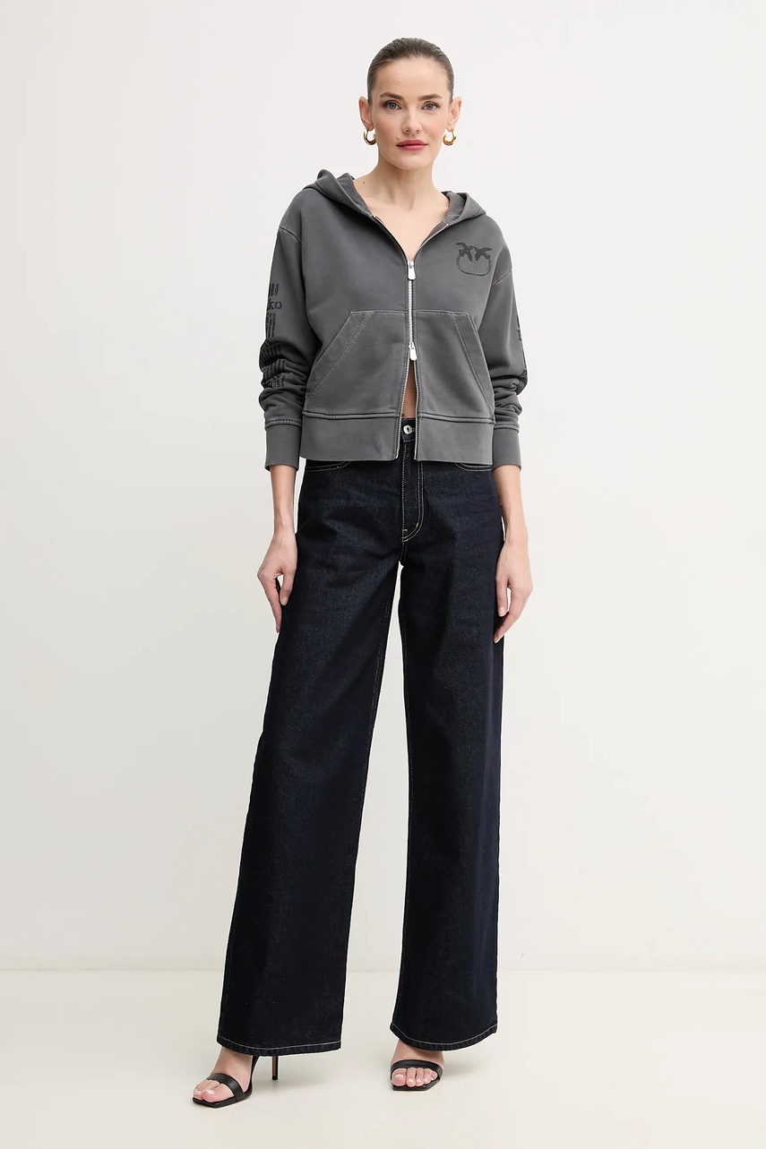 Хлопковая кофта Pinko женская цвет серый с капюшоном с принтом 104622 A2CV 5004204