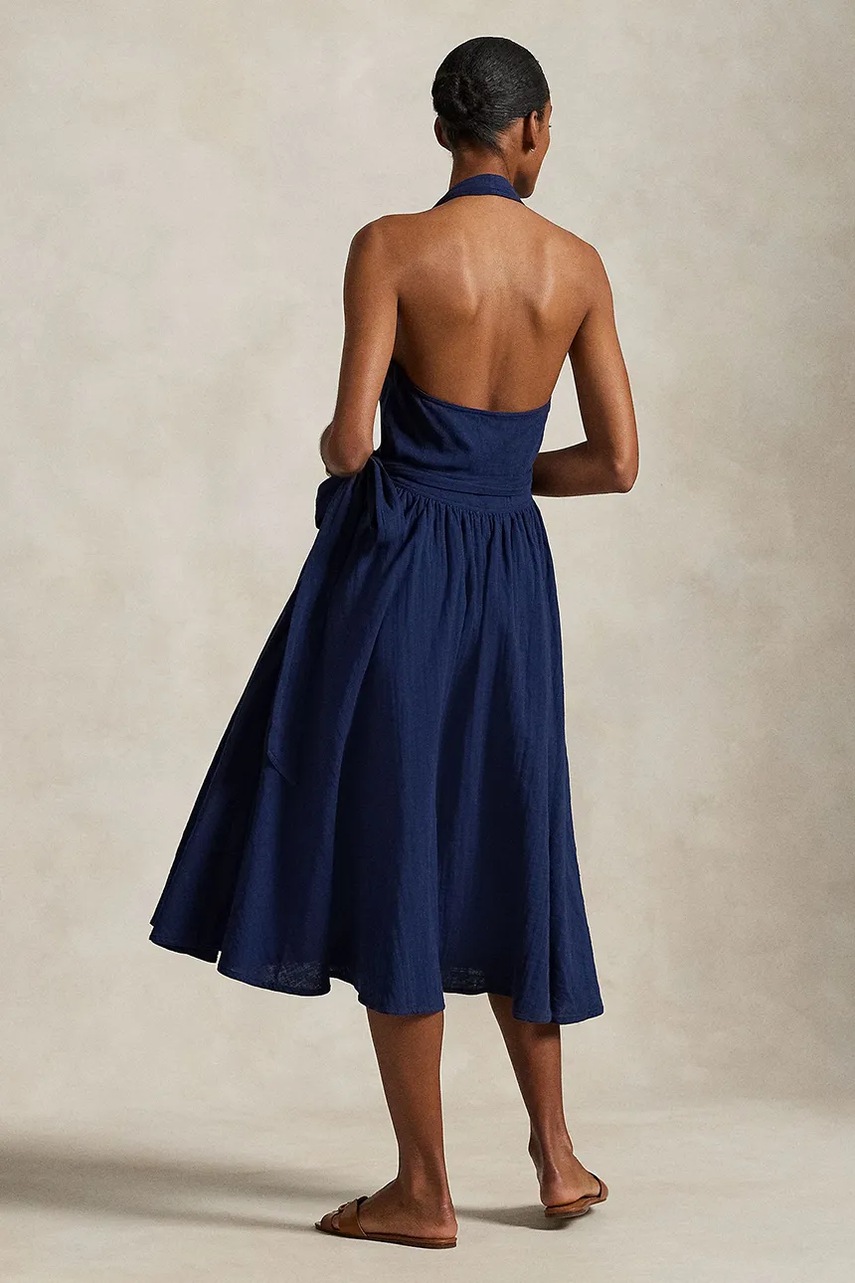Платье Polo Ralph Lauren цвет синий midi расклешённое 211969146 5222366