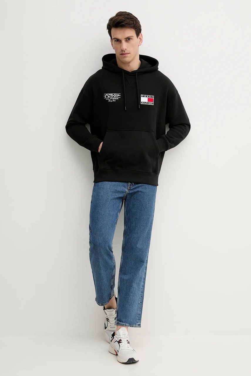 Хлопковая кофта Tommy Hilfiger x F1 THE MOVIE цвет чёрный с капюшоном с аппликацией MW0MW41386 5188694