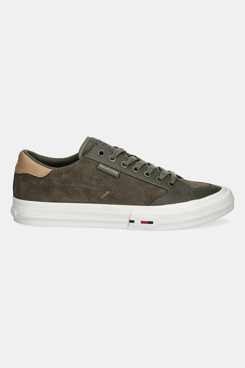 Замшевые кроссовки Tommy Hilfiger TH HI VULC STREET LOW SUEDE RWB цвет зелёный FM0FM05458 4739042