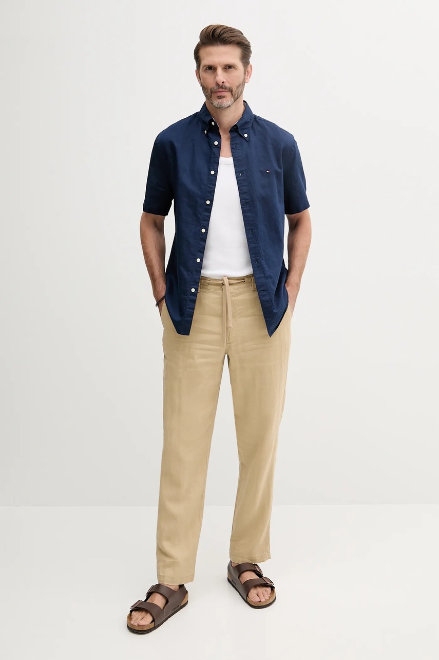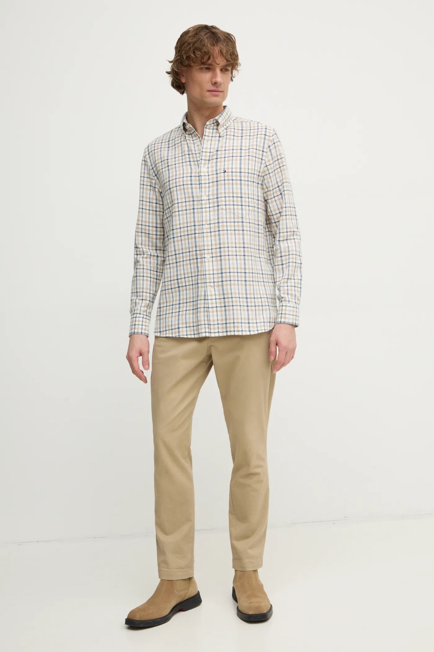 Рубашка с примесью льна Tommy Hilfiger цвет бежевый regular воротник button-down MW0MW40704 5088753
