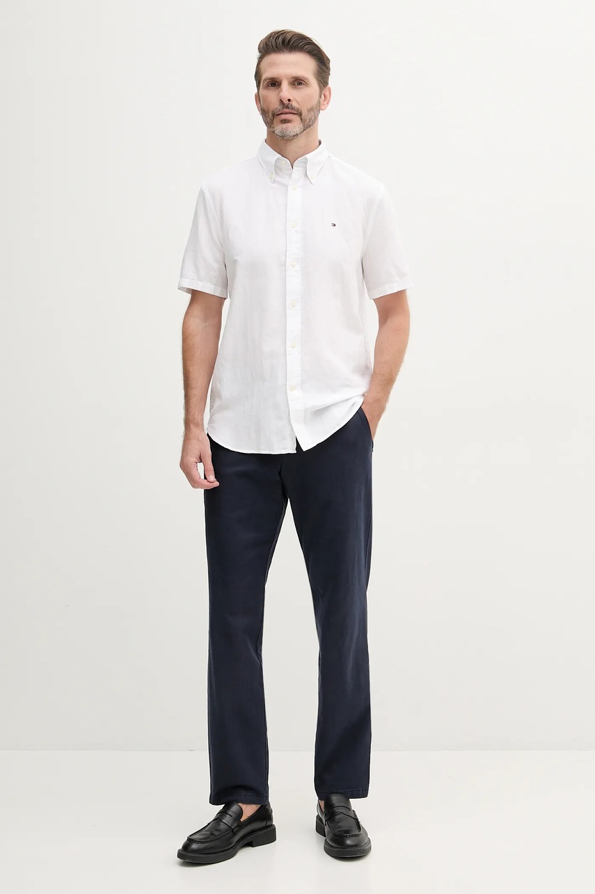 Рубашка с примесью льна Tommy Hilfiger цвет белый regular воротник button-down MW0MW40703 5089491