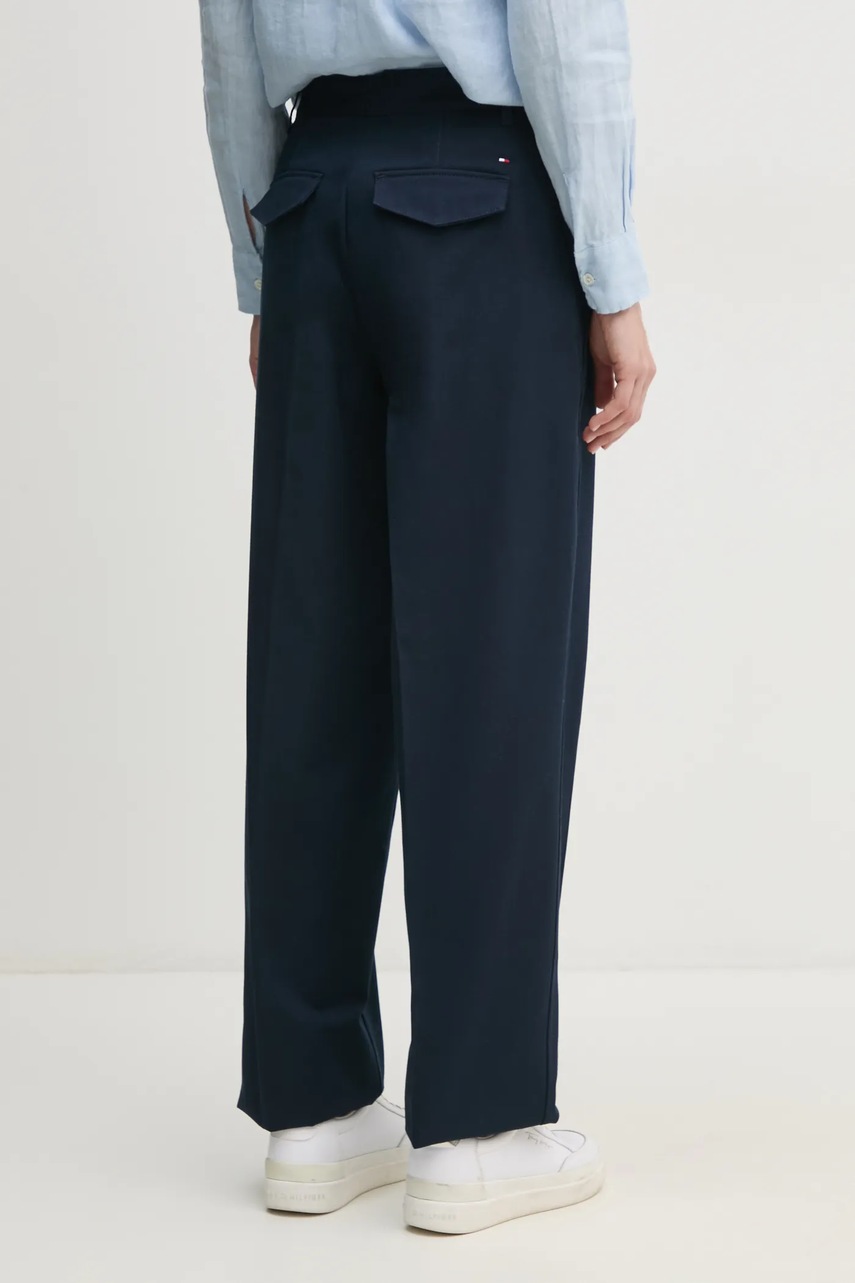 Хлопковые брюки Tommy Hilfiger цвет синий прямые высокая посадка WW0WW45487 4832225