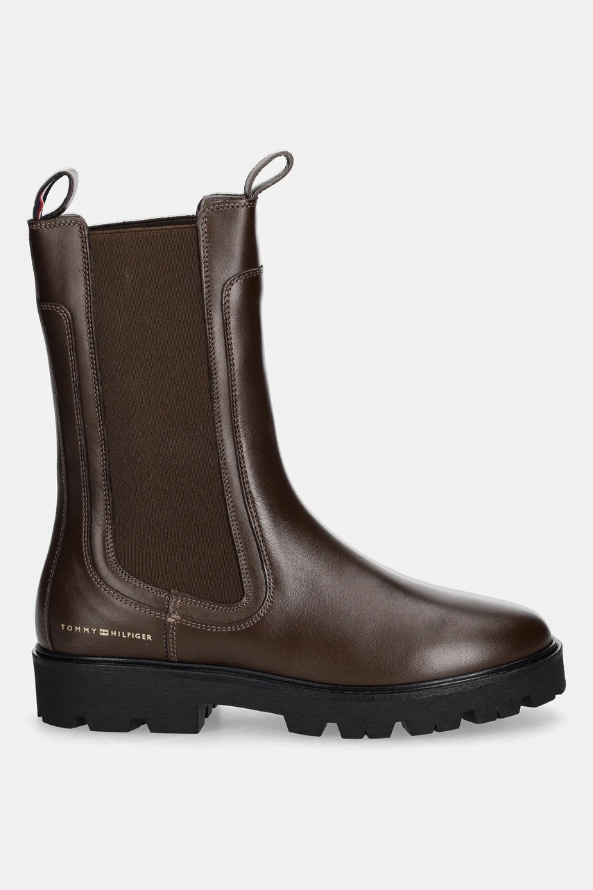 Кожаные полусапоги Tommy Hilfiger TH LTHR MID CHELSEA цвет коричневый на плоском ходу FW0FW08770 5384471