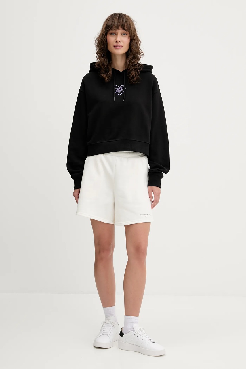 Хлопковая кофта Tommy Jeans цвет чёрный с капюшоном с принтом DW0DW21408 5247355