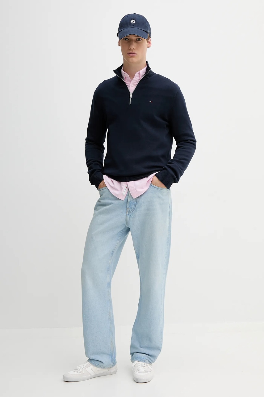 Хлопковый свитер Tommy Jeans цвет синий лёгкое с полугольфом DM0DM21654 5181985