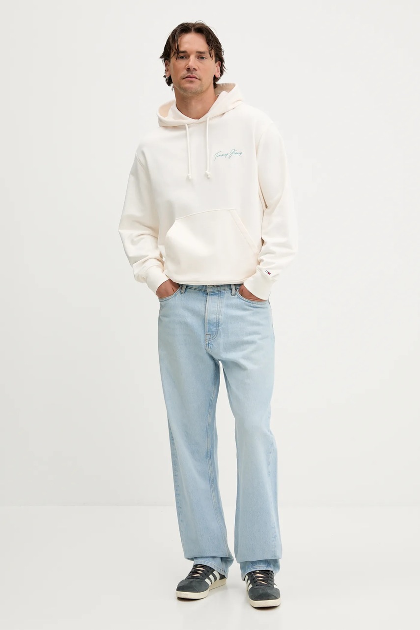Хлопковая кофта Tommy Jeans цвет бежевый с капюшоном однотонная DM0DM20258 4746548