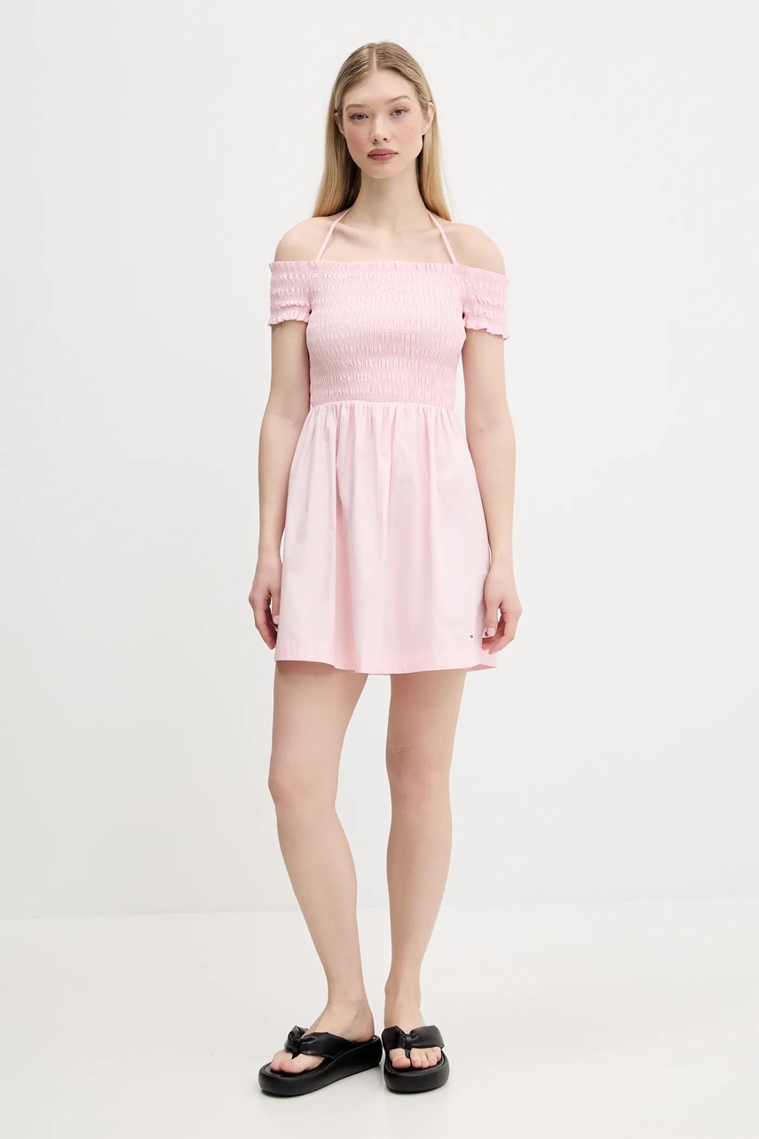 Хлопковое платье Tommy Jeans цвет розовый mini расклешённое DW0DW21786 5350850