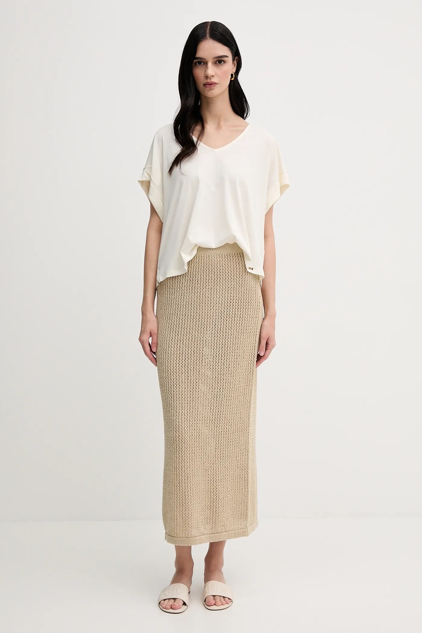 Льняная юбка United Colors of Benetton цвет зелёный midi расклешённая 4201966