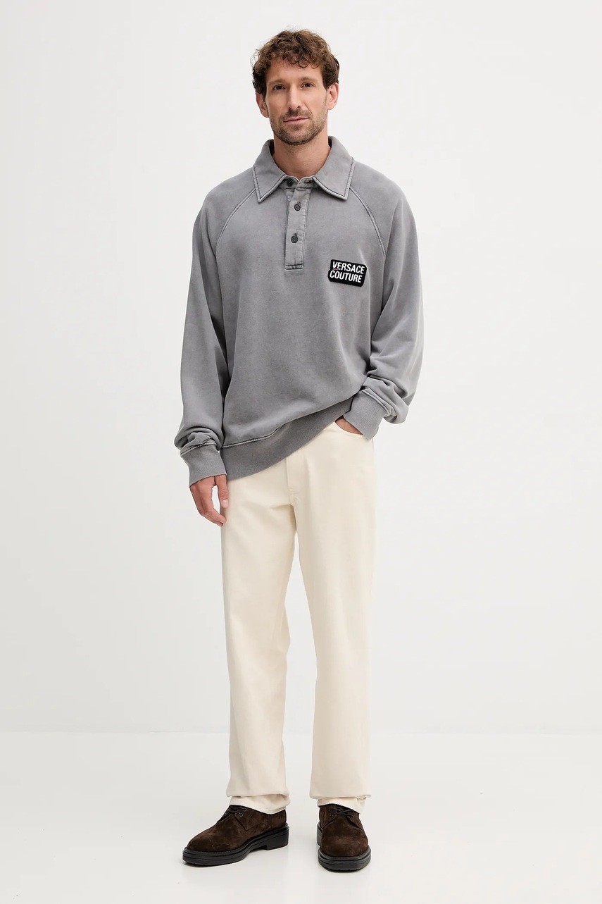 Хлопковая кофта Versace Jeans Couture цвет серый с аппликацией 79GAIE00 CF00E 5377967