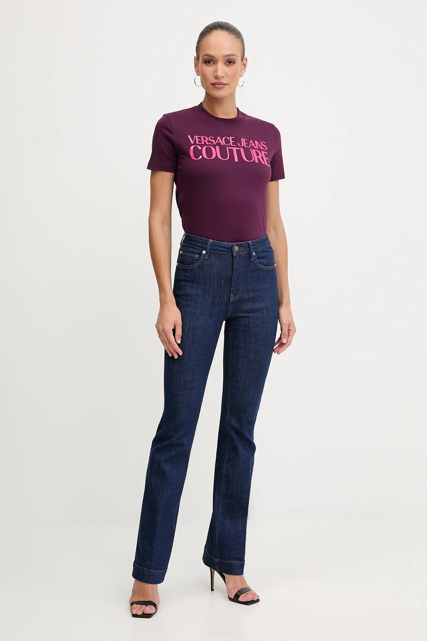Хлопковая футболка Versace Jeans Couture цвет фиолетовый 79HAHE05 CJ00E 5304434