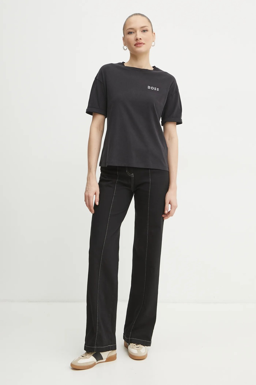 Хлопковая футболка BOSS Orange женская цвет чёрный 50536628 4868541