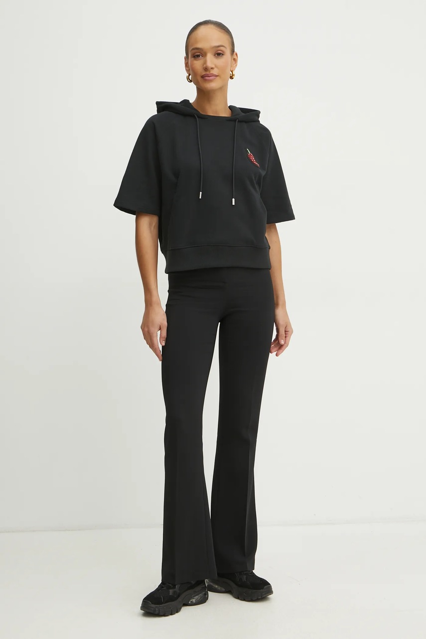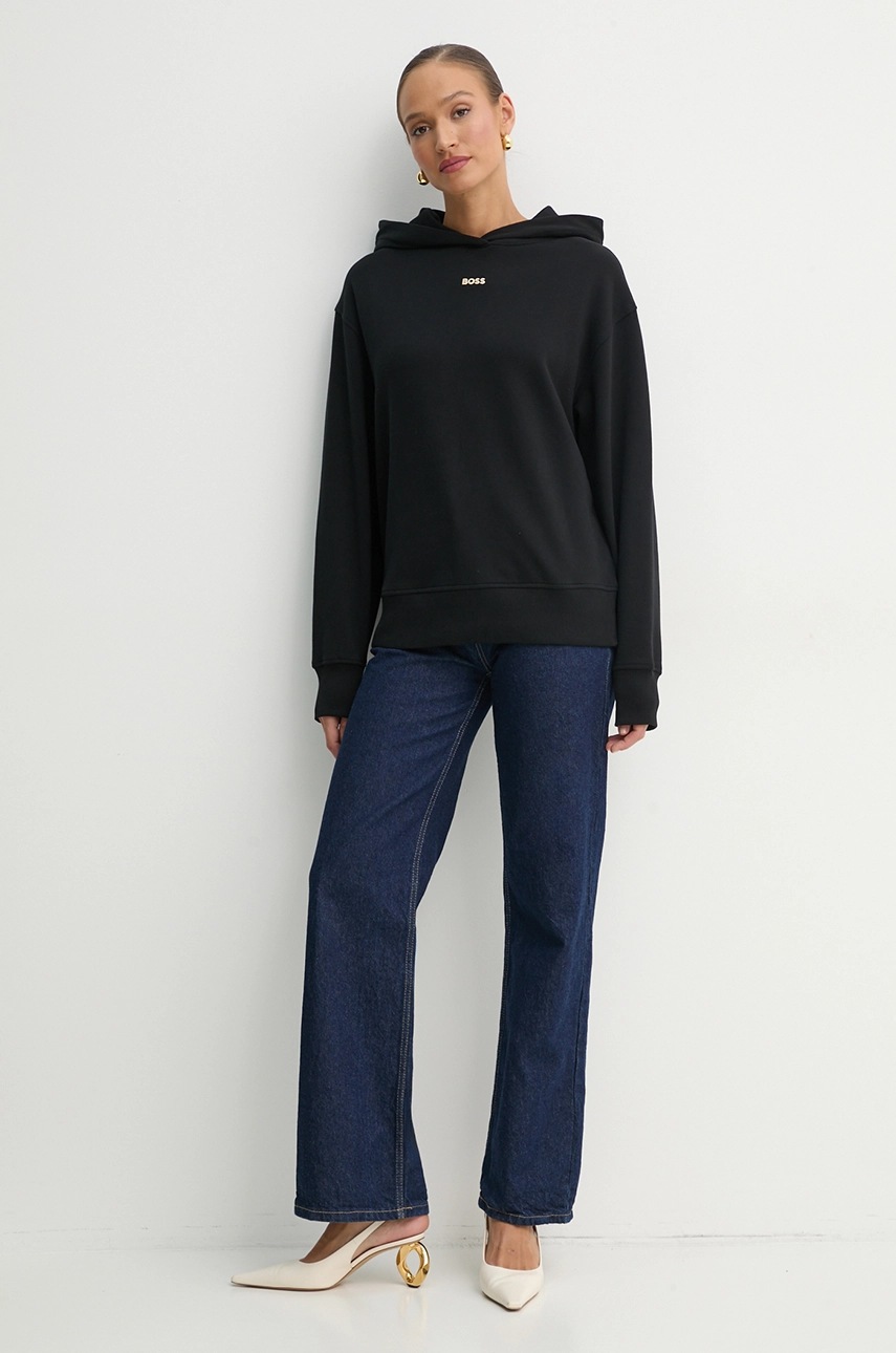 Хлопковая кофта BOSS Orange женская цвет чёрный с капюшоном с аппликацией 50531853 4899184